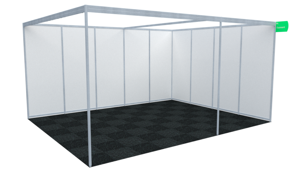 Een Space Only stand is inclusief antracietgrijze tapijttegels.